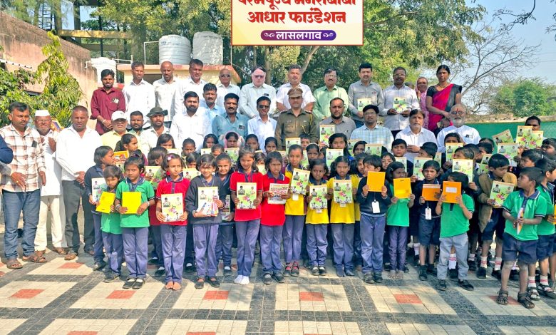 परमपूज्य भगरी बाबा आधार फाउंडेशन च्या वतीने जिल्हा परिषद शाळेत शैक्षणिक साहित्य वाटप