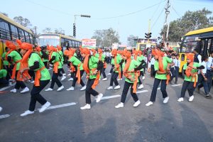 त्यानंतर रॅली खांबेकर खुंट या मार्गे गंगा दरवाजाकडे निघाली त्यावेळी छत्रपती संभाजी नगर चौफुलीवर इयत्ता पाचवी व सहावीच्या विद्यार्थ्यांनी डंबेल्स वर आधारित कवायत संचलन केले यावेळी प्रेक्षकांनी त्यांना भरभरून दाद दिली.