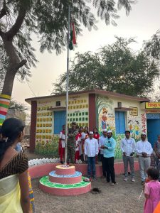 ऑपरेशन सिंदूरमध्ये उल्लेखनीय भूमिका बजावणारे गावाचे भूमिपुत्र सेनादलातील जवान श्री.गौरव गोरसे यांच्या हस्ते ध्वजारोहण करण्यात आले. शालेय व्यवस्थापन समितीचे सदस्य श्री.सुधीर खताळ यांच्या हस्ते ध्वजपूजन संपन्न झाले.