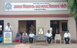 अध्यक्षस्थानी विद्यालयाचे प्राचार्य नितीन भामरे होते.व्यासपीठावर उपमुख्याध्यापक उल्हास पवार,पर्यवेक्षक हिरामण चौधरी,ज्येष्ठ शिक्षक सोमनाथ गिरी,अपर्णा उईके,निवृत्ती सदगर ,मुख्य लिपिक भाऊसाहेब रणशेवरे,वरिष्ठ लिपिक जीवन शिंदे,अनिल गोवर्धने,वैशाली विधाते,