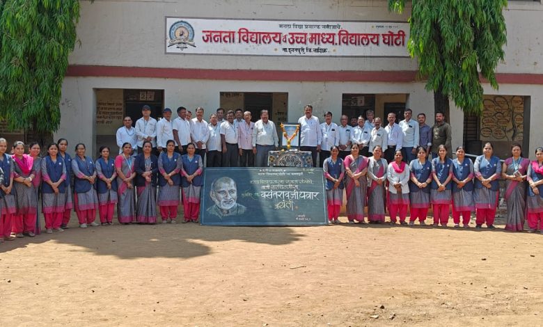 घोटी येथील जनता विद्यालय व ज्युनिअर कॉलेजमध्ये मराठा विद्या प्रसारक संस्थेचे भूतपूर्व सरचिटणीस कर्मवीर डॉ.वसंतराव पवार यांच्या जयंती निमित्त त्यांना अभिवादन करण्यात आले.