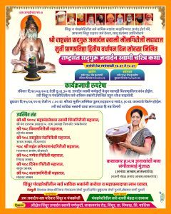 या मंगलमयी निमित्ताने ‘राष्ट्रसंत सद्गुरू जनार्दन स्वामी महाराज चरित्र कथा’ व विविध धार्मिक कार्यक्रमांचे आयोजन करण्यात आले आहे.